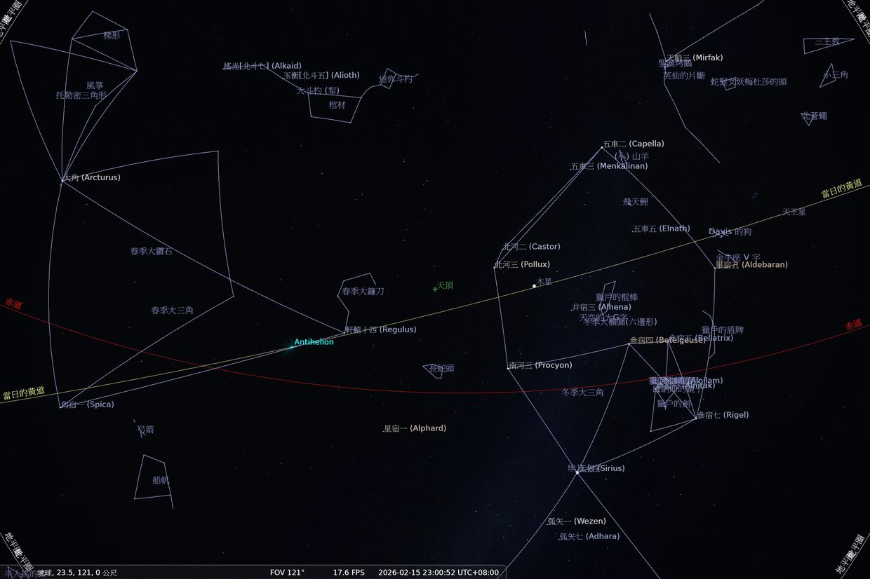 名列年度三大流星雨之一的象限儀座流星雨,1月4日極大期的「平均每小時天頂數量 ZHR (Zenithal Hourly Rate)」約達120顆(去年為80顆),流星活躍期間從2025/12/28持續至2026/1/12,1/3當晚午夜12點一過、跨入1/4,象限儀座流星雨輻射點將從東北方海平線逐漸升起,一直到日出前,都有機會欣賞到壯觀的流星極大期四射的奇景。流星的輻射點位在牧夫座,按理應稱為「牧夫座流星雨」,然而象限儀座其實早在1922年被國際天文學聯合會(IAU)除名,僅保留象限儀星座流星雨這一名稱。象限儀原是古代用於測量天體位置的儀器,於1795年被法國天文學家命名並列入當時的星座名錄。象限儀座流星的特徵是高峰期短,大多集中在極大期前後數小時爆發,此外,它的速度中等,通常不會留下持久的軌跡,但經常會產生明亮的火球。和一般大多源自彗星的流星雨不同,象限儀座流星雨可能源自小行星「196256 (2003 EH1)」的碎片。